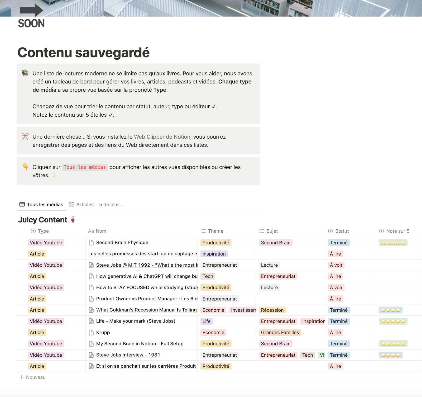Utilise Notion pour lire et répertorier tes lectures 📚