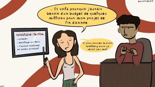 Mais ce qui ne remplacera jamais une école de cinéma, c’est d’apprendre à travailler en groupe, à déléguer, à partager. C’est le gros point fort de l’école, se retrouver avec des gens passionnés qui ont envie de travailler et de se donner à fond pour les projets des autres. En soi, on peut se passer d’école de cinéma, mais si on a besoin d’un encadrement (comme moi), et que l’on n’arrive pas à apprendre seule, c’est le top. II y aura forcément des déceptions au niveau de l’apprentissage ou de l’école en elle-même, mais on est entouré de gens passionnés et c’est vraiment le plus important !