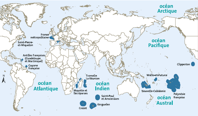 La ZEE française est la deuxième plus vaste au monde après les États-Unis (même si tu pourras parfois la trouver en 1re position en fonction des méthodes de calcul), et s’étend sur plus de 11 millions de km². C’est dû aux nombreux territoires ultramarins (les départements comme la Martinique, mais aussi les territoires plus autonomes comme Wallis-et-Futuna) qui représentent 97 % du domaine maritime français.