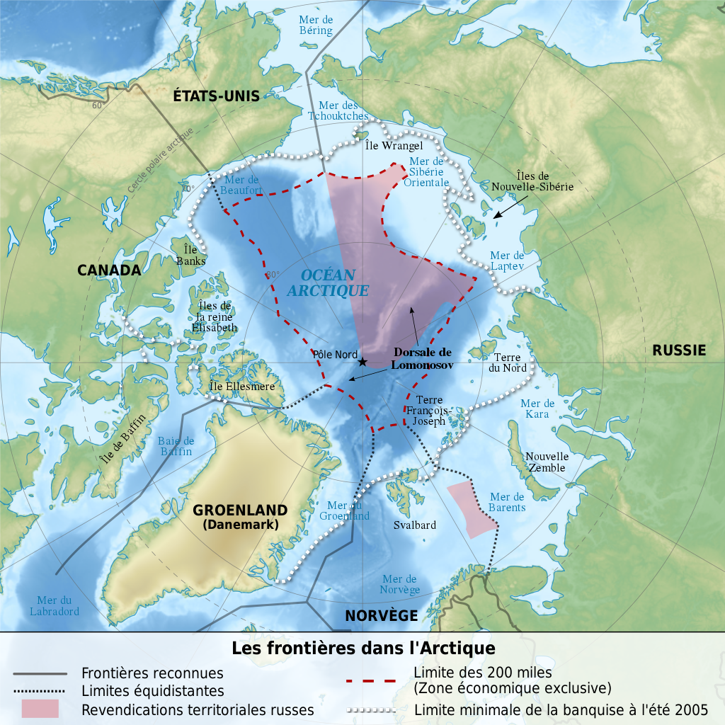 Mais surtout, cette fonte des glaces fait naître des convoitises sur les eaux arctiques. En effet, la disparition du glacier du pôle Nord pourrait libérer une aire de circulation et d’exploitation majeure. La banquise n’a même pas fini de fondre, que les pays environnants sont déjà en train de revendiquer des ZEE ! Le Canada, la Russie, le Danemark, l’Islande et la Norvège ont des côtes qui donnent sur l’océan Arctique, et tous demandent l’extension de leur plateau. ↔️