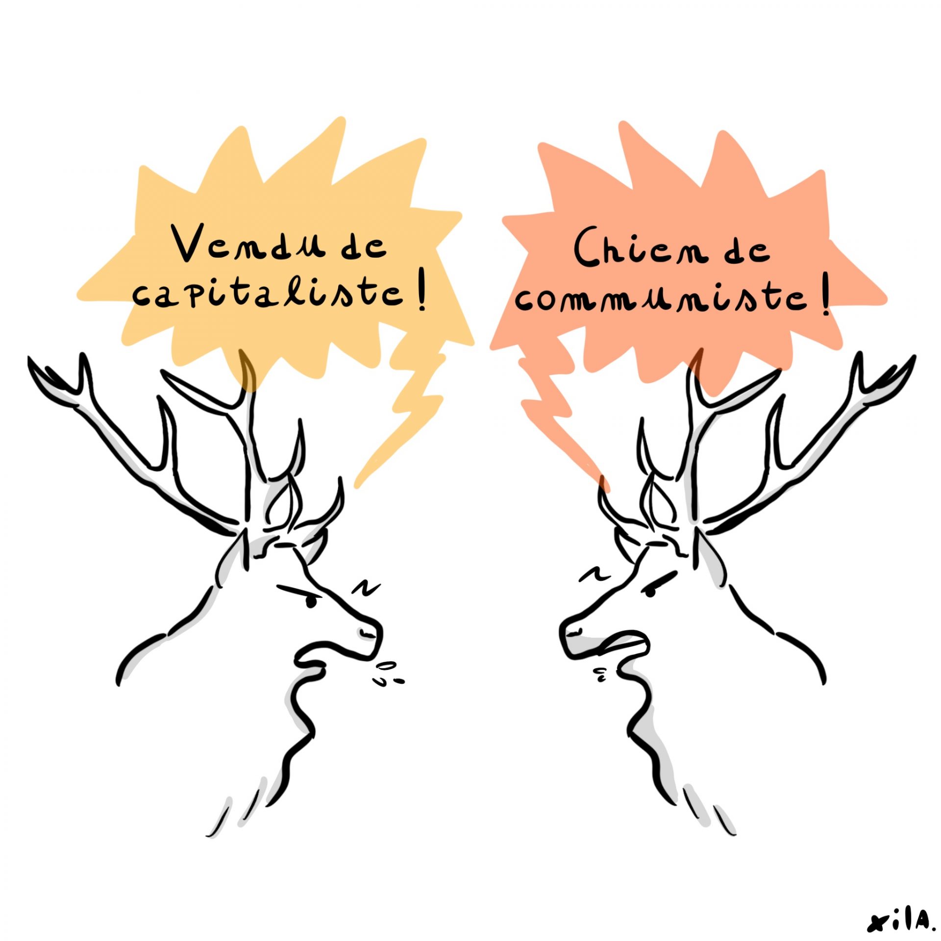 Bref, rien à voir avec des cerfs communistes ou capitalistes, mais tout simplement avec un danger identifié par une espèce ! Quelqu’un leur dit que le mur de fer est tombé, ou… ?