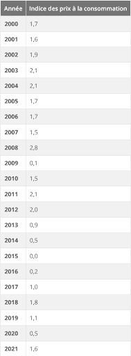 À l’époque des Trente Glorieuses, le taux d’inflation variait beaucoup. Grâce à des mesures de contrôle de prix, on connaît depuis une hausse plutôt faible d’une année sur l’autre. En moyenne ces vingt dernières années, le taux d’inflation n’a pas dépassé les 2 %.
