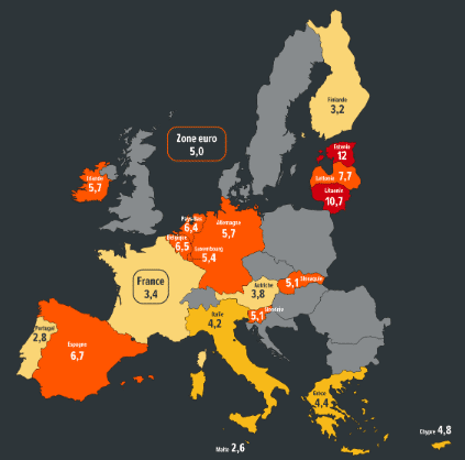 De cette manière, on peut dresser une carte qui permet d’identifier l’inflation dans chaque pays. Le but étant qu’elle reste stable, faible (autour de 2%) et donc prévisible !