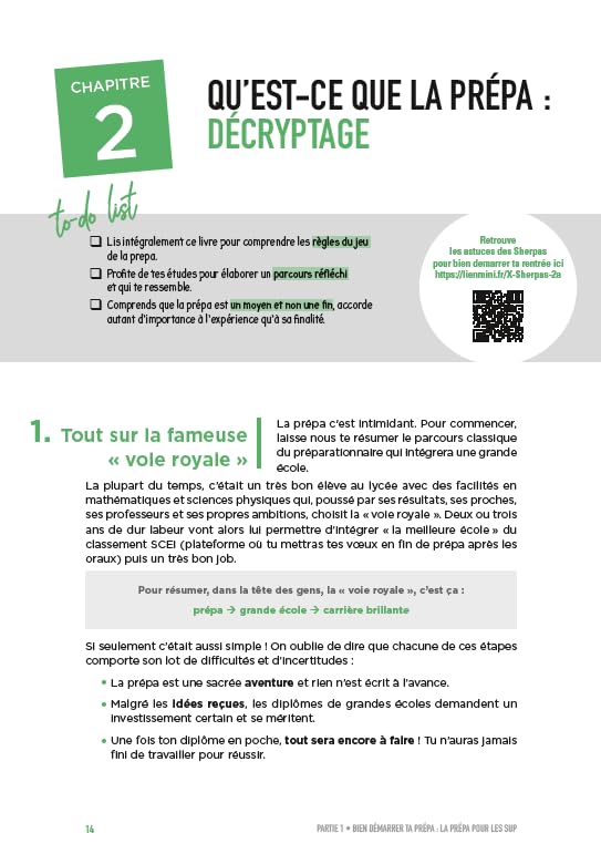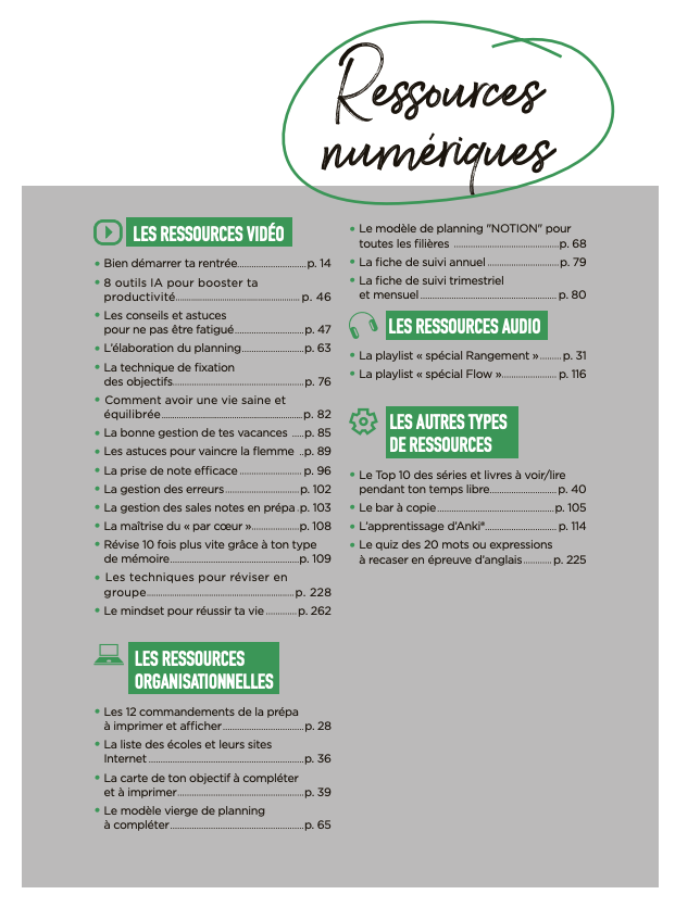> Tous les hacks et astuces des Sherpas : prendre des notes, faire des fiches, bien lire en prépa, comprendre ses erreurs, muscler sa mémoire, automatiser le « par coeur », gagner en productivité, tout est abordé pour te permettre de gagner du temps et te concentrer sur l’essentiel : intégrer l’école de tes rêves.