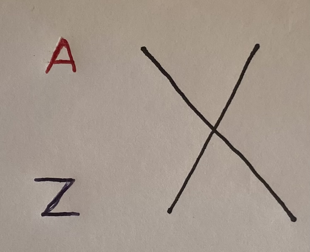 - La grosse lettre au centre, ici représentée par le X, est toujours le symbole de l’élément chimique dont il est question.