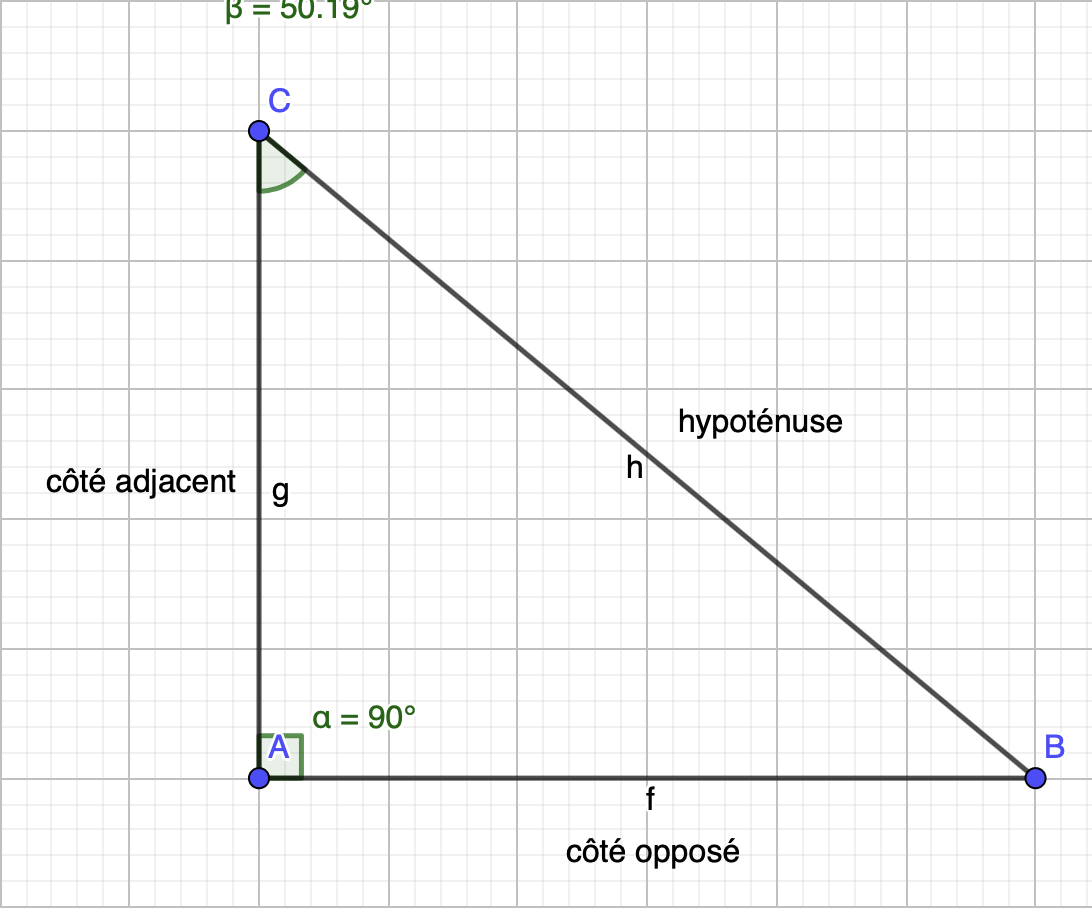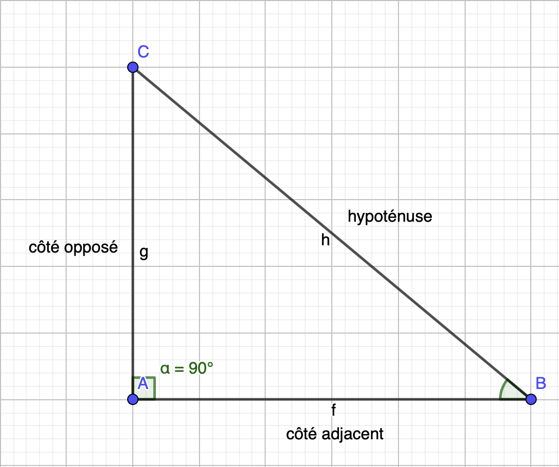 La trigonomĂ©trie sâapplique aux triangles rectangles et fait un lien entre les angles et les cĂŽtĂ©s.