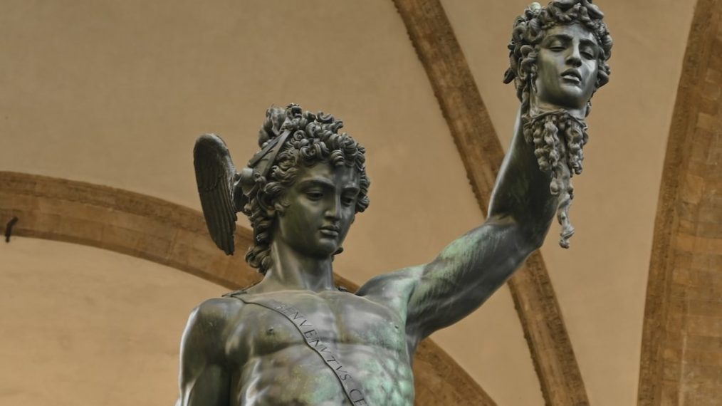 ✅ Pendant la Renaissance avec la célèbre statue du héros tenant la tête coupée de Méduse, par l’artiste Benvenuto Cellini qui date de 1554. 🗽
