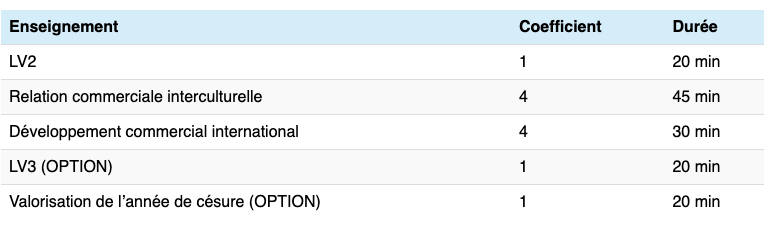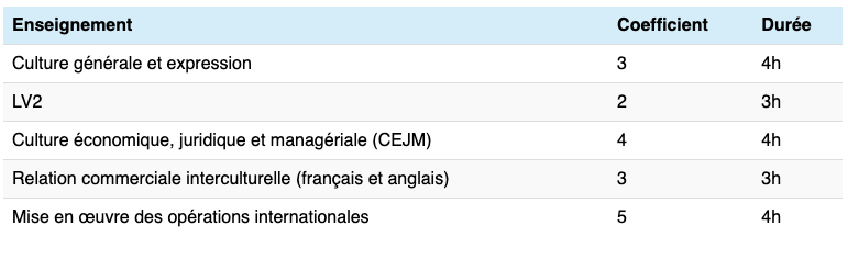 Les épreuves du programme BTS Commerce International