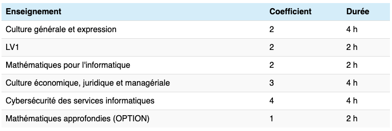 Les épreuves du programme BTS SIO