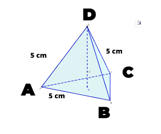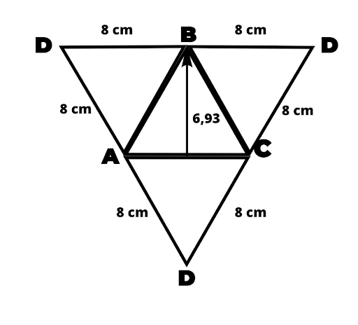 Calculons l’aire du tétraèdre régulier ABCD avec chaque côté (arête) égal à 8 cm et une hauteur de 6,93 cm.👇